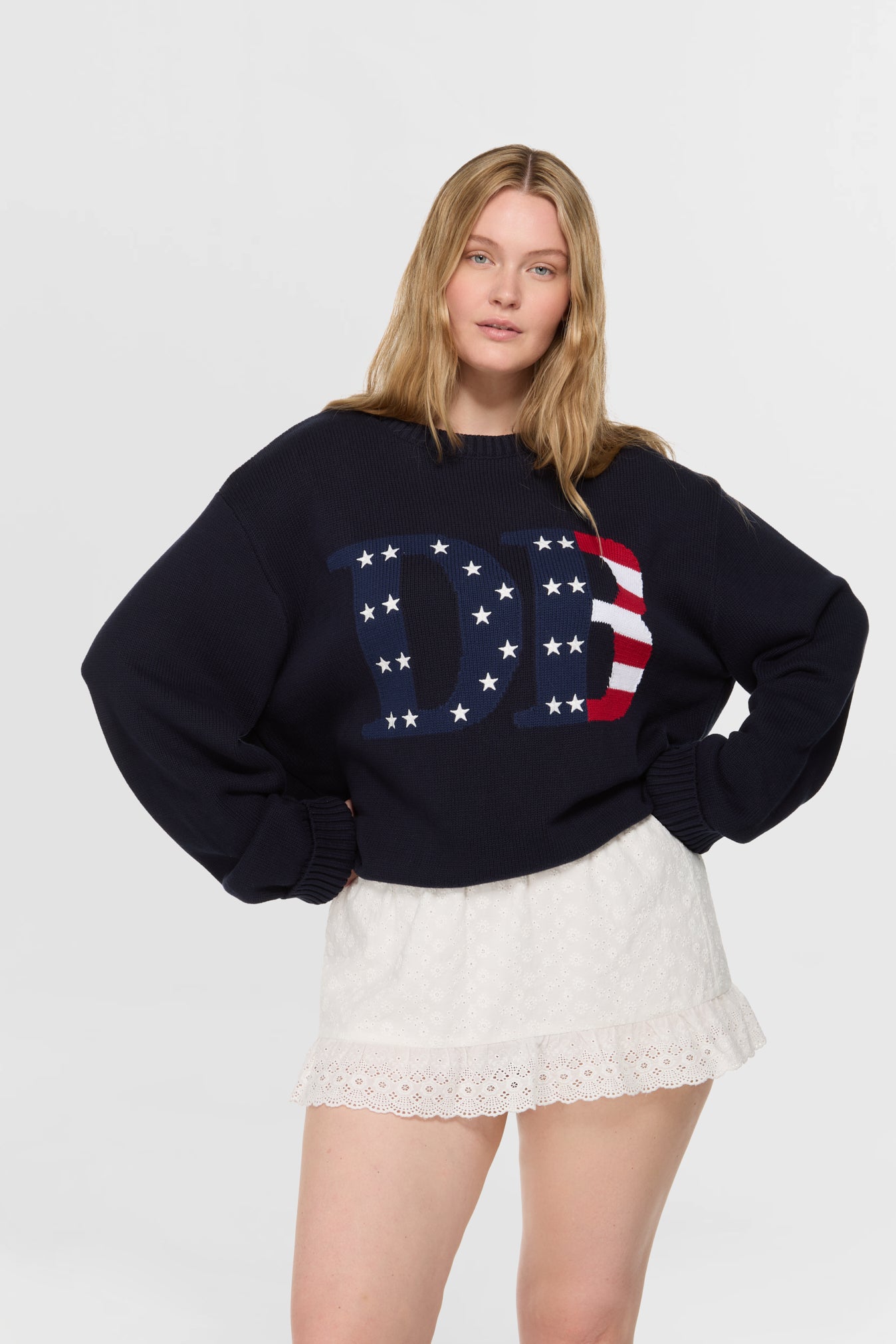 A knit ode to the American summer — coastal mornings, slow afternoons, and weekends spent seaside. Crafted from 100% cotton yarn and finished with our signature "DB" intarsia and embroidered stars, it's a subtle nod to classic Americana. Designed to be thrown on over sun-drenched shoulders or layered for cool summer evenings.