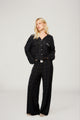 Size & Fit: Top: – Oversized - An intentionally loose fit with extra volume – Intended to hit around the waist Bottom: –Mid Rise –Wide leg –Full-length Intended to hit at the ground while wearing flat shoes