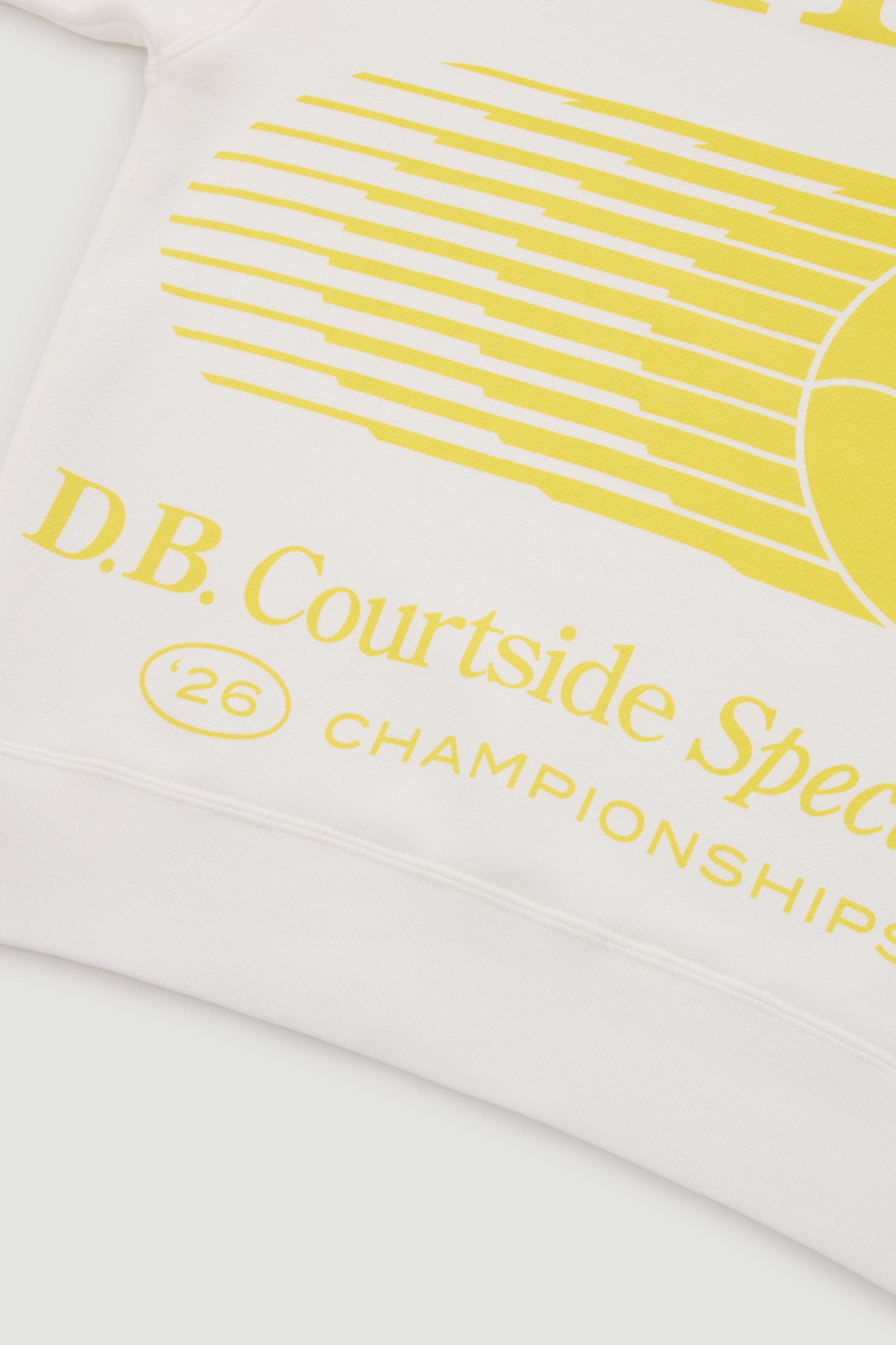 Oversized and effortless, the classic crewneck we’re known for. Featuring a vintage tennis graphic in a sun-washed yellow inspired by the desert courts of the spring swing. Soft and lived-in, finished with an easy courtside feel.