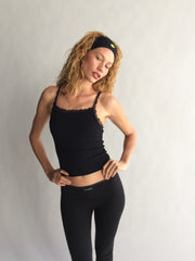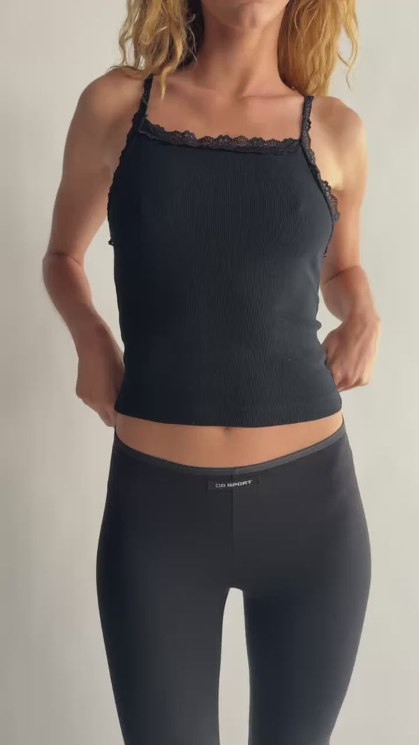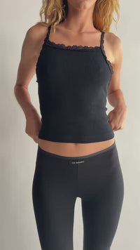 Made from our Essential Stretch Rib, a cotton blend with a light, flexible feel. Designed with a slim fit and delicate lace trim along the neckline, straps, and armholes. A built-in shelf bra offers light support for everyday movement. An easy balance of sporty and feminine, designed to take you from active mornings to evening plans. Features embroidered branding at the upper back.