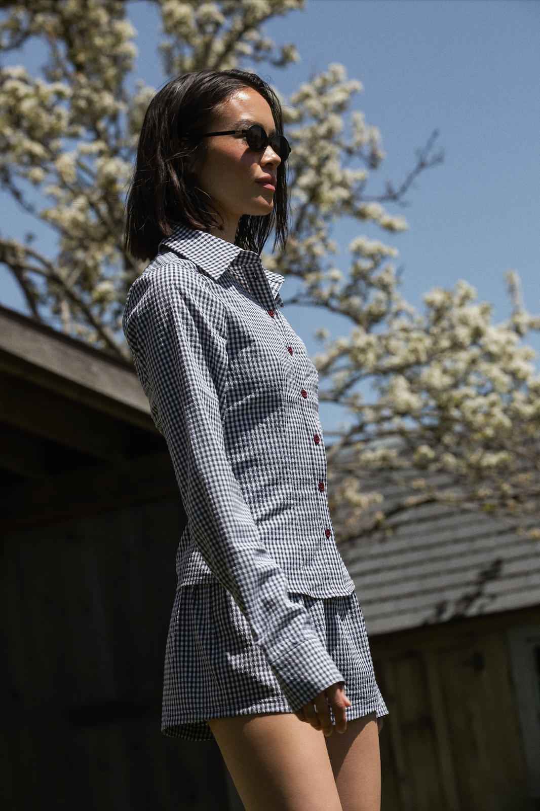 The set of the summer. Fitted on top, relaxed on the bottom. Made from stretch seersucker check, it brings just the right amount of structure with a lightweight feel.