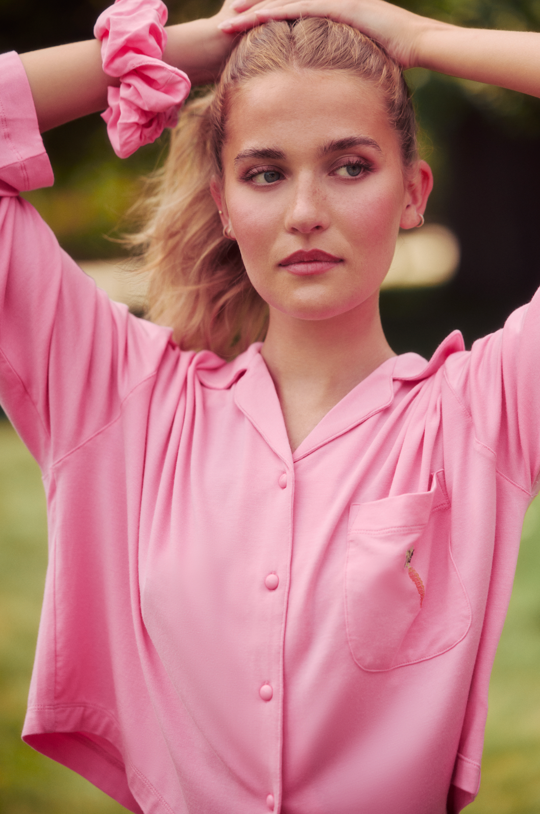 For tying your hair back while making breakfast or watering the tomatoes. The Garden Bed Scrunchie is soft, easy, and made to pair with the sleep set—same prints, same laid-back charm.