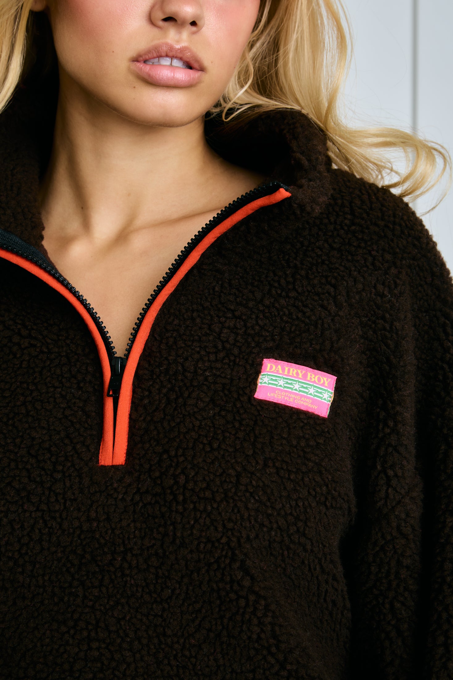 An oversized quarter-zip fleece inspired by days on the mountain and a life rooted in comfort and function. It blends both worlds into a fresh, easy layer with thoughtful details that make every element feel personal. Designed with a tall neck that can be worn zipped or open, extra-long sleeves, a loose body that can be cinched at the hem, and hidden side pockets.