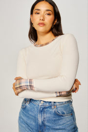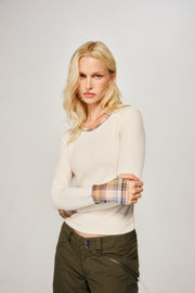 A fitted thermal with a crew neckline, extra long sleeves, and a slightly cropped body. Finished with contrast rib trims and a sporty thumb-loop detail. Soft and easy—the layer you reach for everyday.